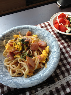 2012-04-08 やきうろん!!! COOKING ウィンナーを切ります。熱したフライパンに油を注ぎます。ウィンナーを痛めます。炒めます。うろんを投入します。うろんを炒めます。マルチスレッドで作成していたスクランブルエッグを投入します。炒めます。そばつゆを注ぎます。炒めます。盛りつけます。食べます。うまいです。