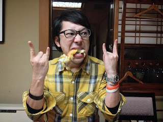 カニを食べてご満悦の、ロック育ちのomiendさん。